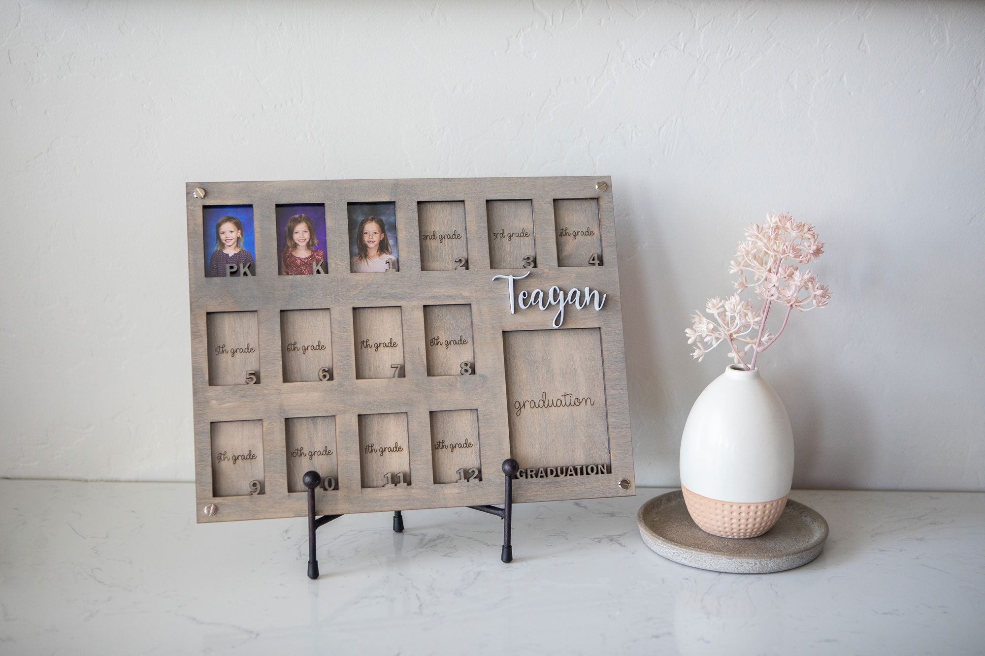 It’s back to school time! The summer went by so quickly for us…I can’t believe we are already getting back into the swing of things with the school year. I thought this would be a great time to share these grade photo frames that I photographed a while back for Red Beam Creation. Everyone that has been to our house and seen them have complimented them! Such a great way to display the school photos from each year…and they actually look good on the shelf! [I’m only a little bit upset that our oldest will be filling up the whole top row this year!]