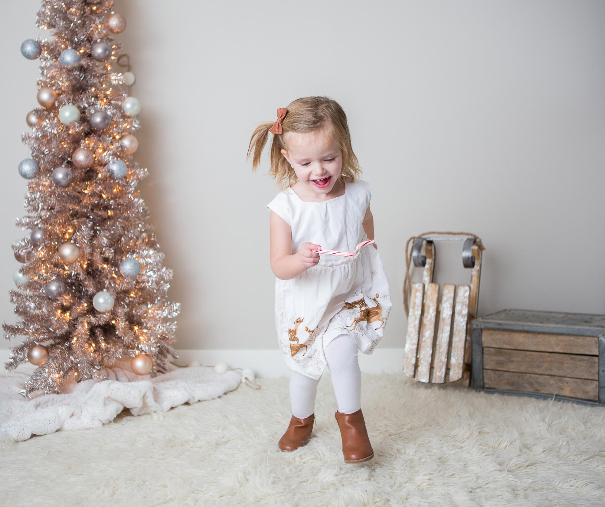 I think I’m going to have to leave my holiday studio set up through Christmas to catch photos of our kiddos along the way!  They had a Christmas party at school last night and we decided to do a quick photo upstairs before we headed out the door!  And I had to leave the running photo in there to prove to everyone that their kid isn’t the only one!  Haha.