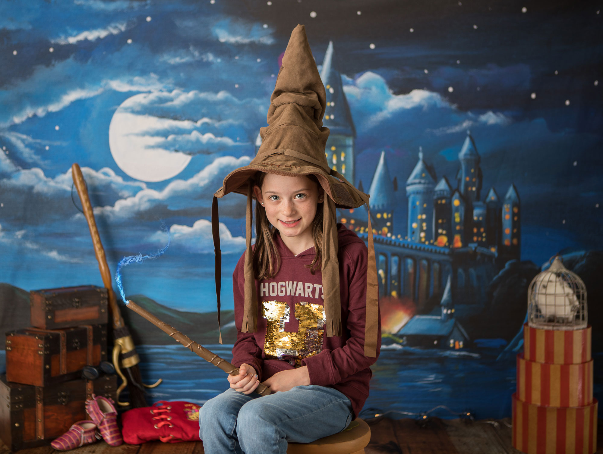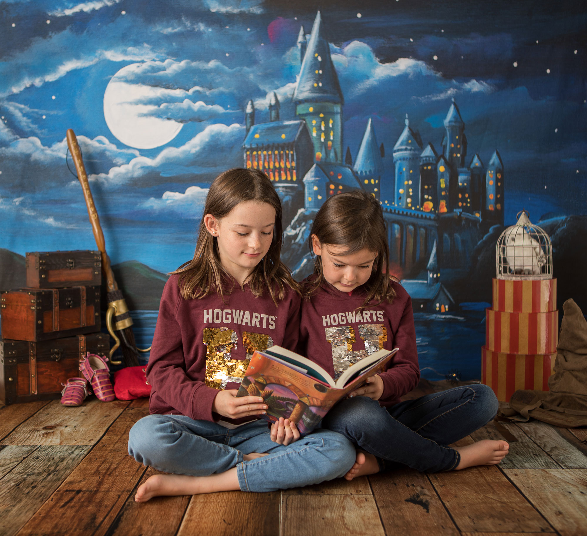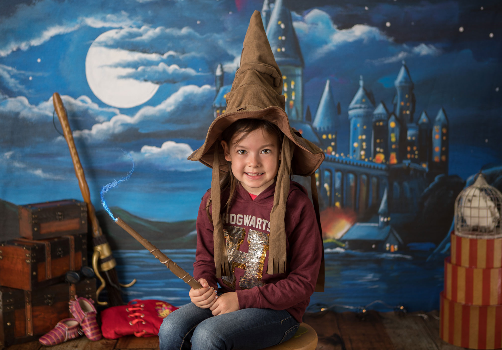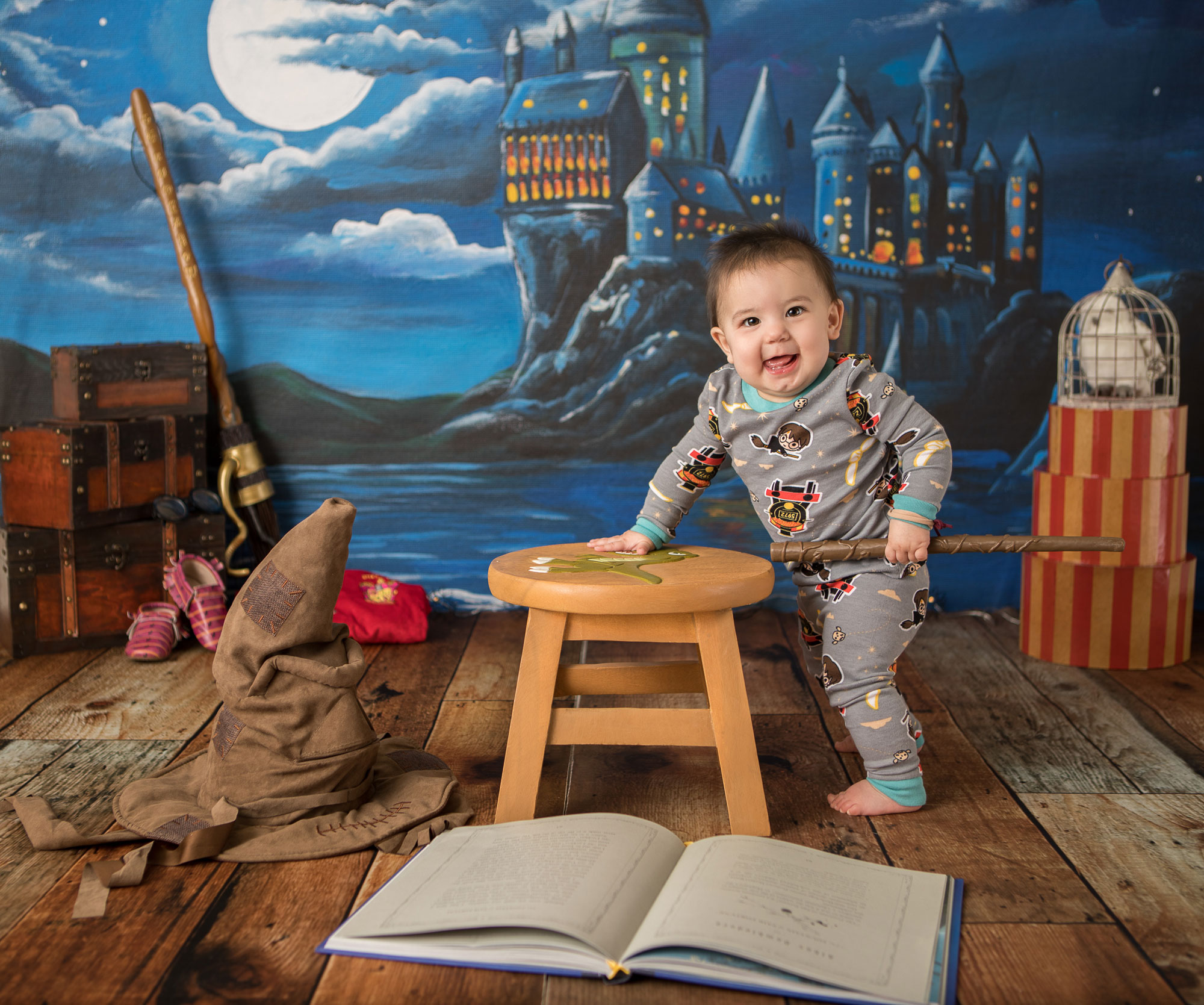 We’re having so much fun with these sessions! Little sis is about to hit her big 9 3/4 months old milestone so themed photos were in order! She has two older sisters that have a Harry Potter themed room…so of course photos to go with their room were needed!